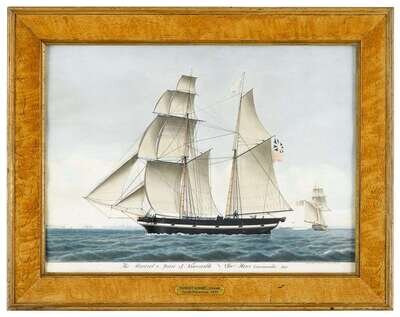 Signed, "Drawn by J. Petersen Copenhagen," and inscribed, "The Harriet & Jane Of Newcastle. Alex Howe, Commander. 1835.," watercolor on paper, grain painted frame.