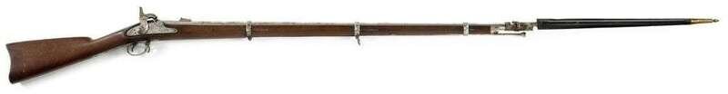Lockplate and barrel dated "1863," bears inspector's proofmarks. Includes a bayonet with scabbard.