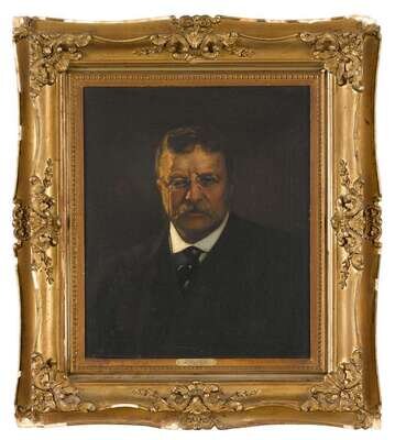 Signed, "Pierce," brass frame plate inscribed, "Theodore Roosevelt, 26th President 1901-1909 Pierce-portrait artist," oil on canvas, framed.