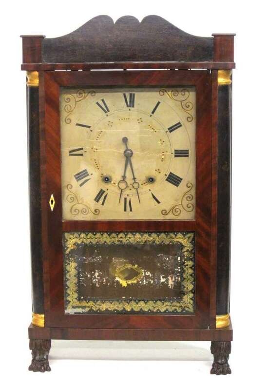 Mahogany and ebonized shelf clock new england, mid 19th century