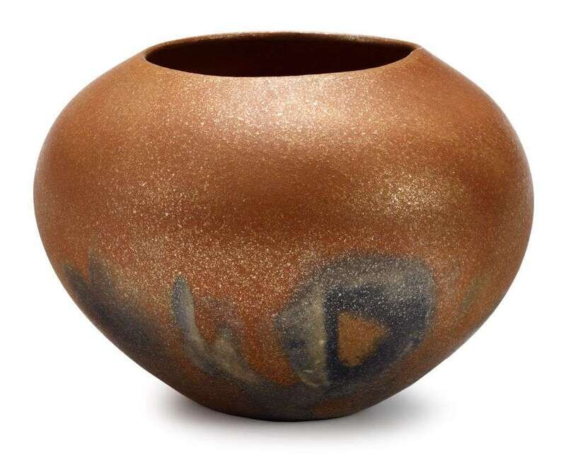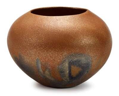 A micaceous bowl of globular form, signed "Lonnie Vigil Nambe."