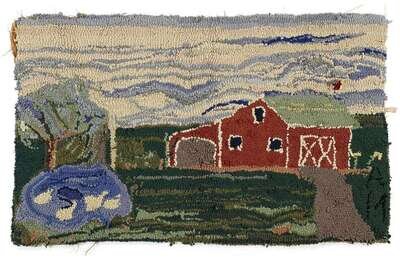 Pictorial hooked rug elsie corey hilliard osborne (1883-1971) southold, long island, new york