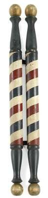 Turned with vase and ball terminals, painted red, white, blue and gold.