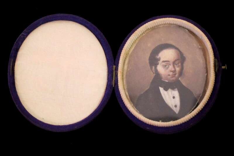 Signed indistinctly and dated "1848?," watercolor on ivory, in an oval velvet case.