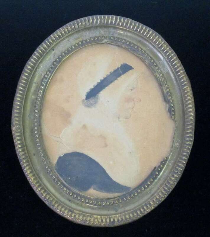 American School 19th century miniature profile portrait of a lady in a bonnet