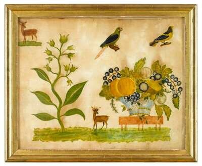 American School 19th century a theorem: harvest table with deer and birds
