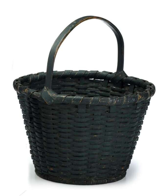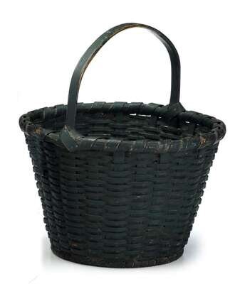 Green painted splint gathering basket north eastern native american