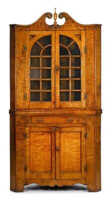 Tiger maple corner cupboard 19th century/20th century