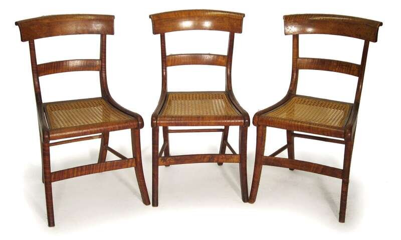 Three tiger maple cane seat chairs circa 1830