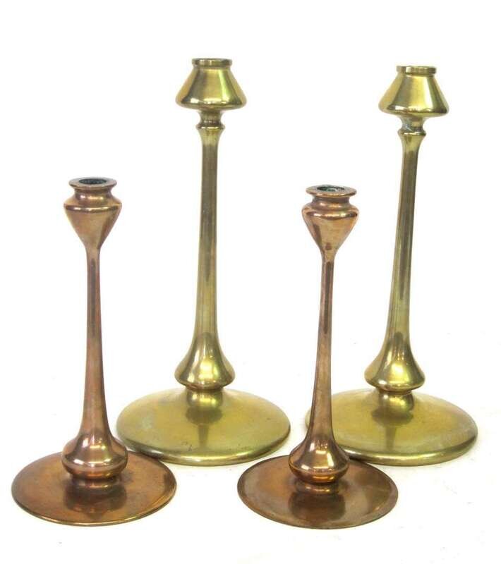 Two pair of Arts and Crafts candlesticks 20th century