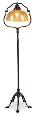 Patinated bronze floor lamp with a favrile shade tiffany studios, new york, ny