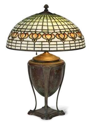 Leaded and stained glass bronze table lamp tiffany studios, new york, ny, late 19th early 20th century
