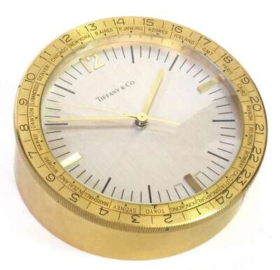 Circular brass desk clock tiffany & co., new york, ny, 20th century