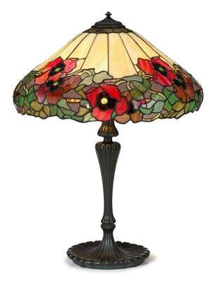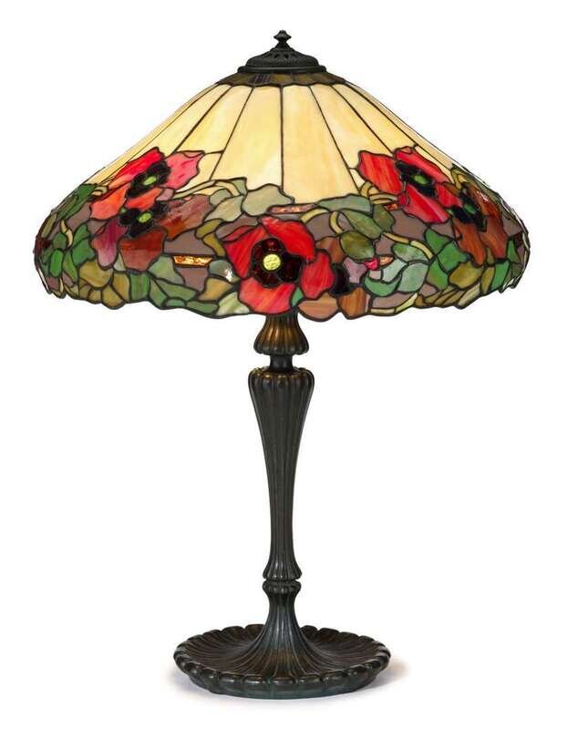 Stained and leaded glass table lamp wilkinson company, brooklyn, ny, 20th century