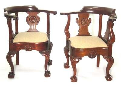 Two Chippendale style carved mahogany corner arm chairs late 19th/ early 20th century