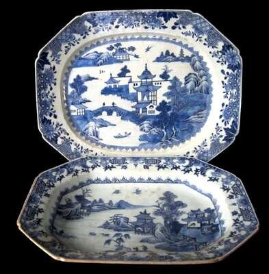 Blue and white Chinese Export Porcelain platter and serving dish 19th century