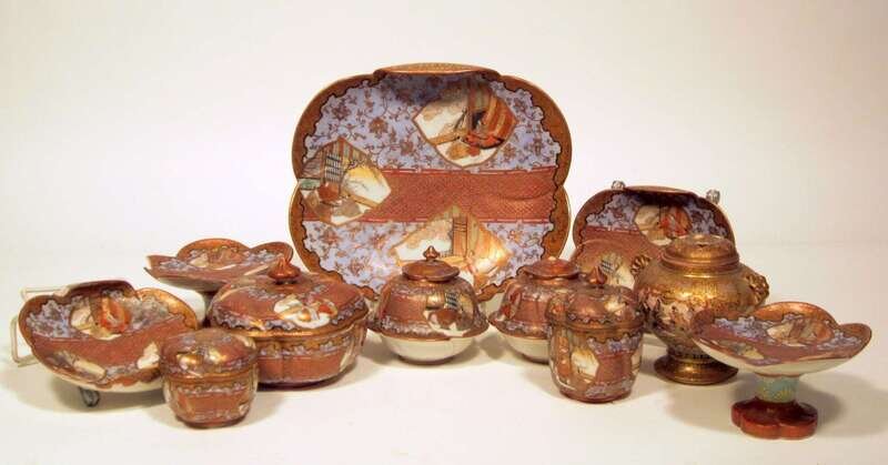 Assembled Japanese Kutani porcelain table items