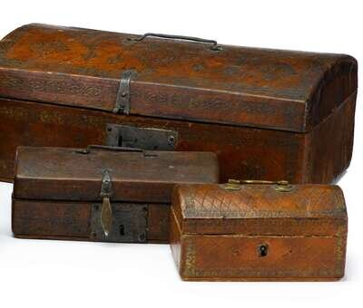 Three leather covered domed-top boxes early 19th century