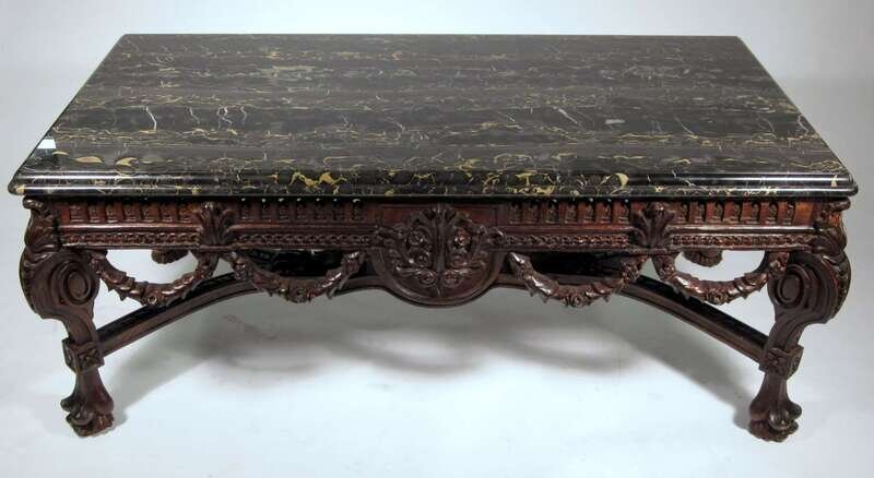 Renaissance revival marble top oak low table