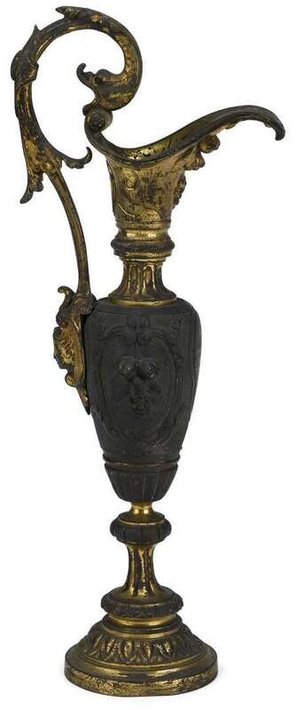 French Rococo style patinated and parcel gilt bronze ewer early 19th century