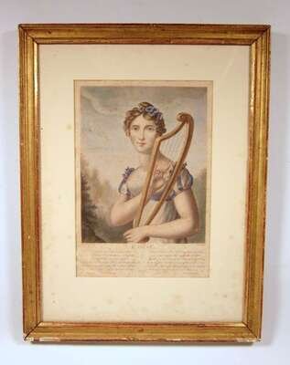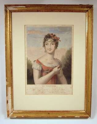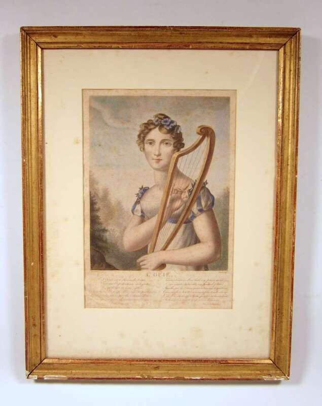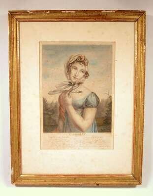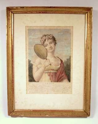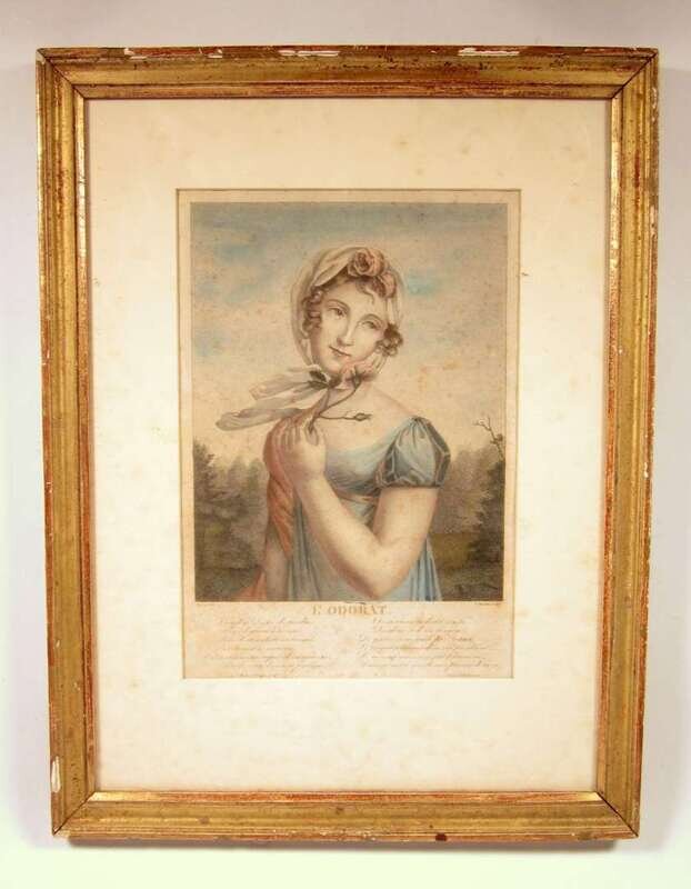Each depicting ladies in costume with French text and poems beneath. Framed and glazed. (4).