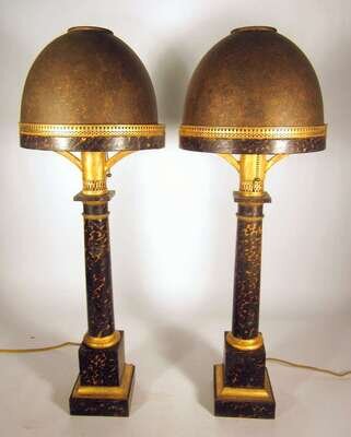 Pair of French gilt and faux tortoiseshell tole oil lamps early 19th century