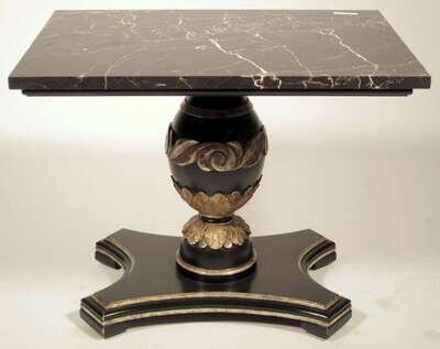 Continental ebonised marble top side table