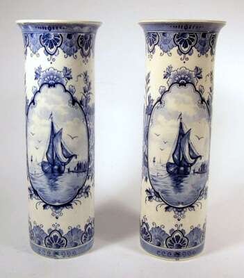 Pair of Dutch tin-glazed sleeve vases 19th century