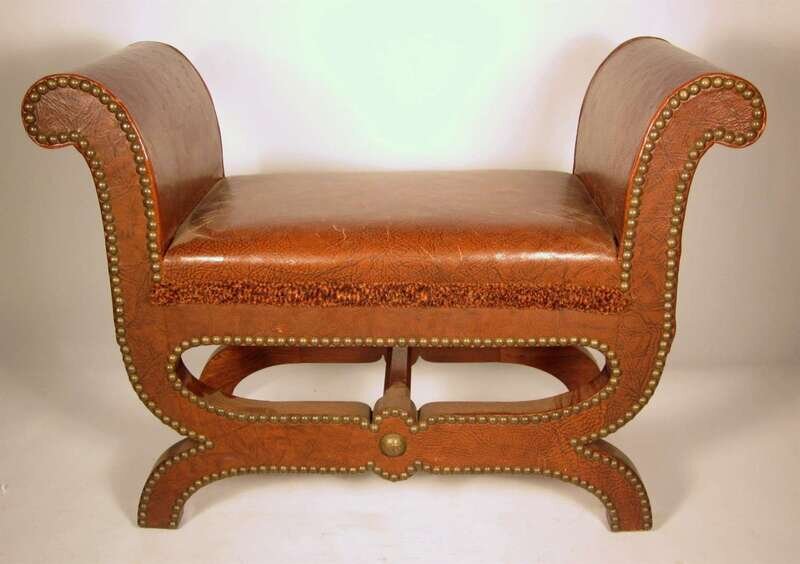 Swedish grace period leather upholstered studded stool otto schulz, early 20th century
