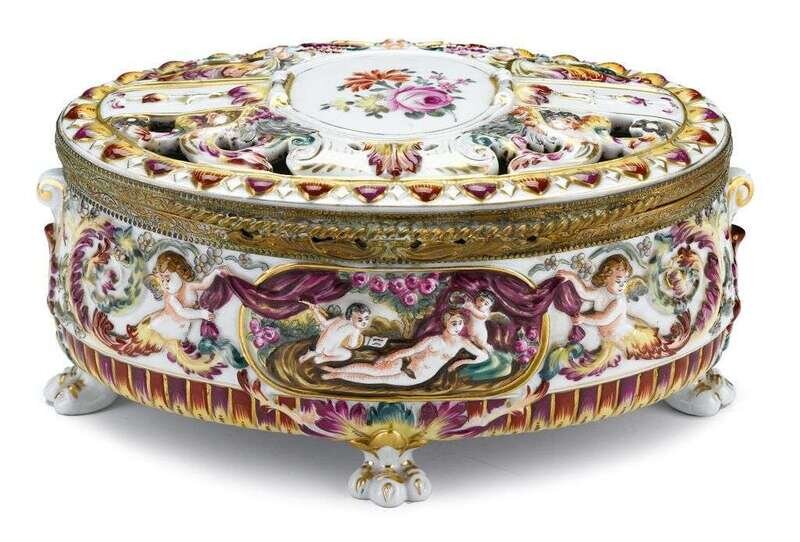 Capodimonte porcelain casket early 20th century