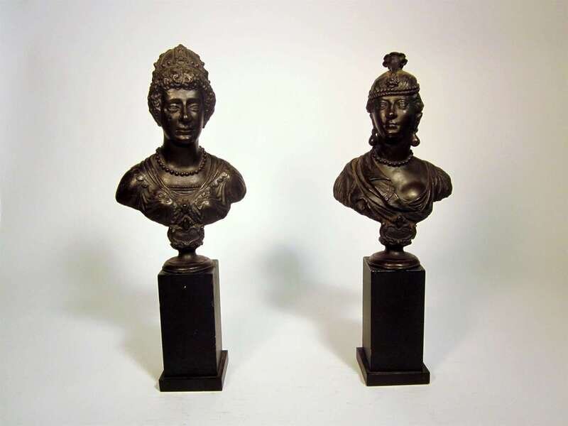 Pair of Continental bronze female busts early 20th century