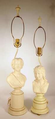 Both with impressed marks to the reverse and raised on socle bases. Now mounted as lamps.