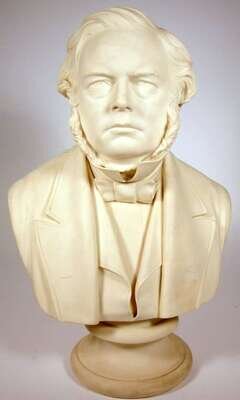 inscribed to the reverse "Rt. Hon. John Bright MP, Published by John Stark, manufactured by Robinson and Leadbeater, Stoke on trent, E. W. Wyon, Sculpt. 1867", raised on socle base.