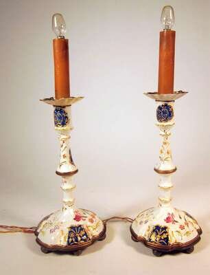 Pair of enameled candlesticks 20th century