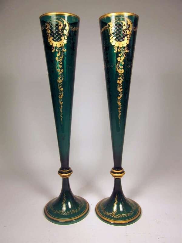 Pair of Continental gilt and green glass vases 20th century