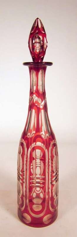 Bohemian colorless and ruby cut glass claret jug late 19th century