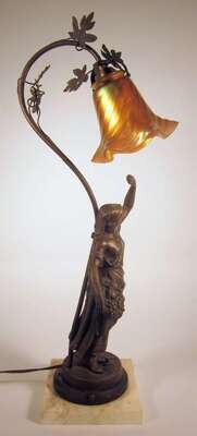 Continental bronze and pearlescent glass lamp