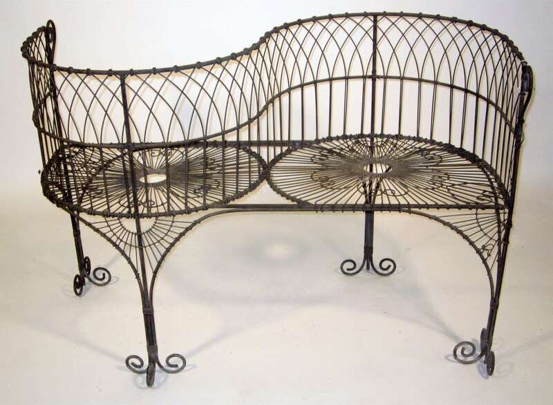 Continental wirework tete-a-tete garden bench 20th century