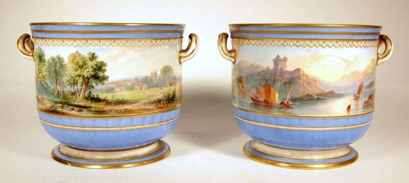 Pair of Minton blue ground porcelain cache pots late 19th century