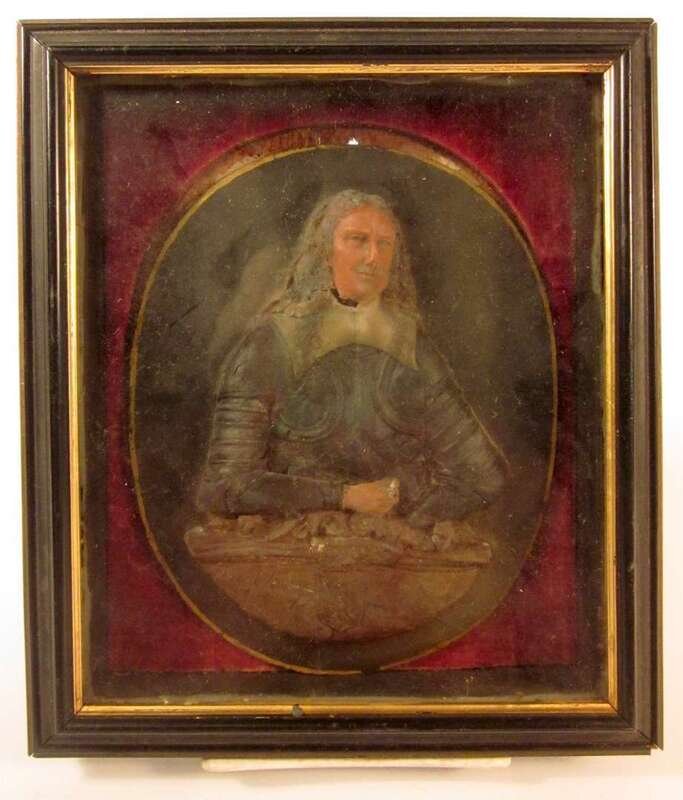 Oval panel in high relief to show a 17th century gentleman wearing armor.
