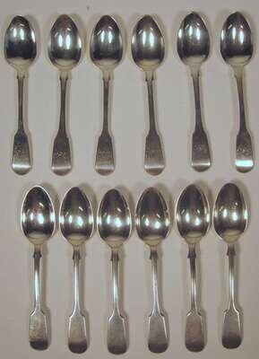 Twelve English sterling silver teaspoons
