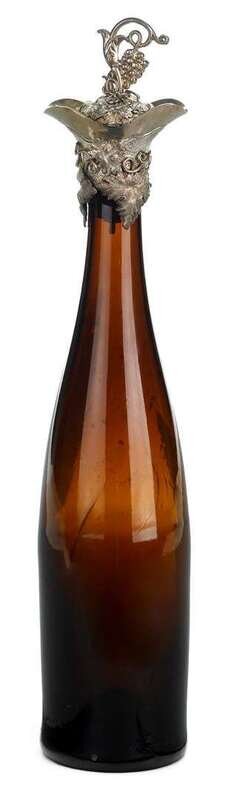Vine and berry mounted mouth, surmounting tapering cylindrical bottle.