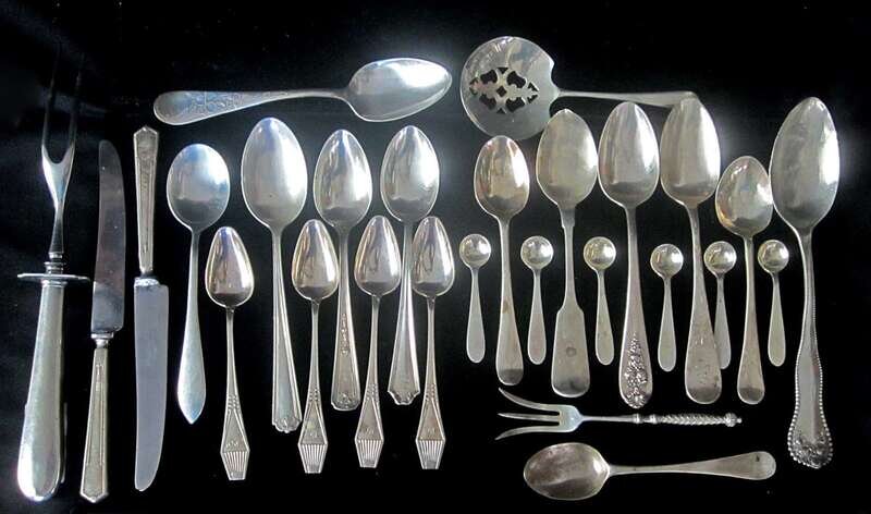 Including various sized spoons, salt dips, luncheon knives and roast carving fork.