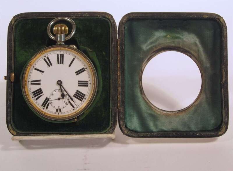 Swiss silver pocket watch in Edwardian travelling case early 20th century