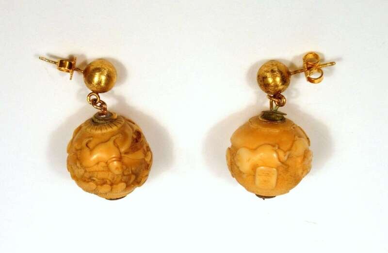 Carved japanese ivory beaded necklace and earrings 19th century