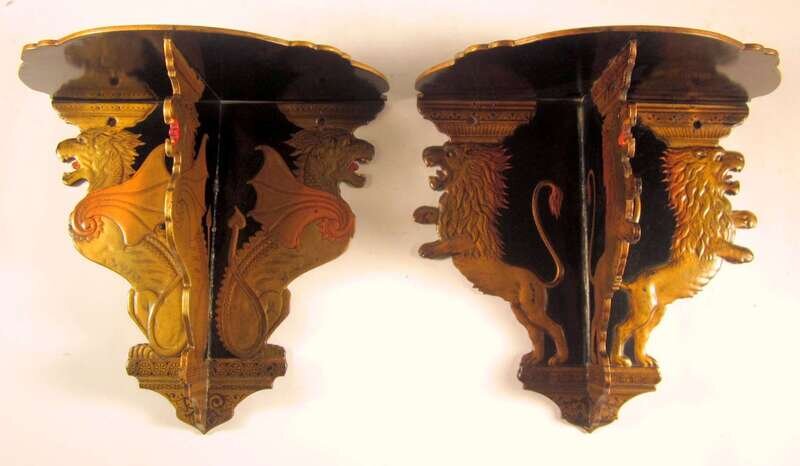 Pair of Chinese Export gilt and black lacquer wall brackets canton, 19th century