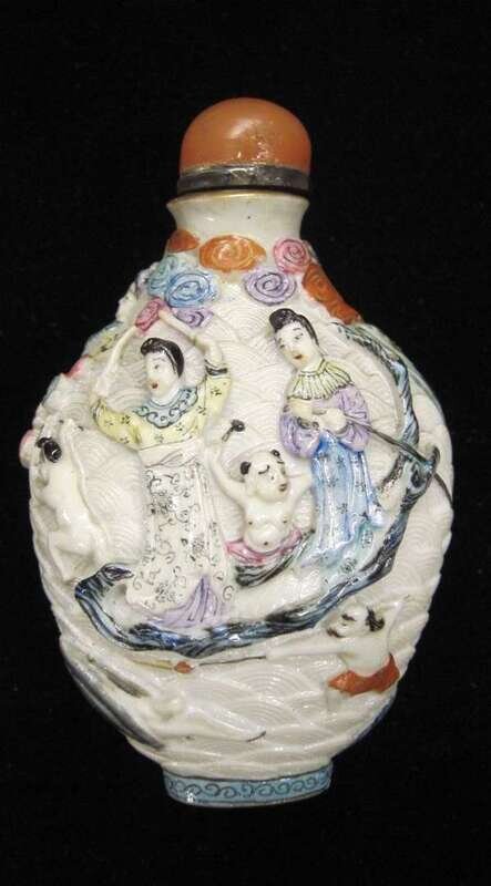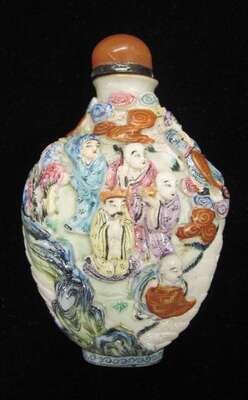 Chinese carved famille rose porcelain snuff bottle qianlong mark,19th / 20th century