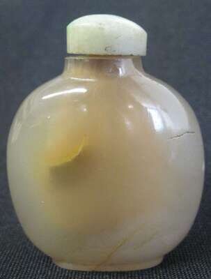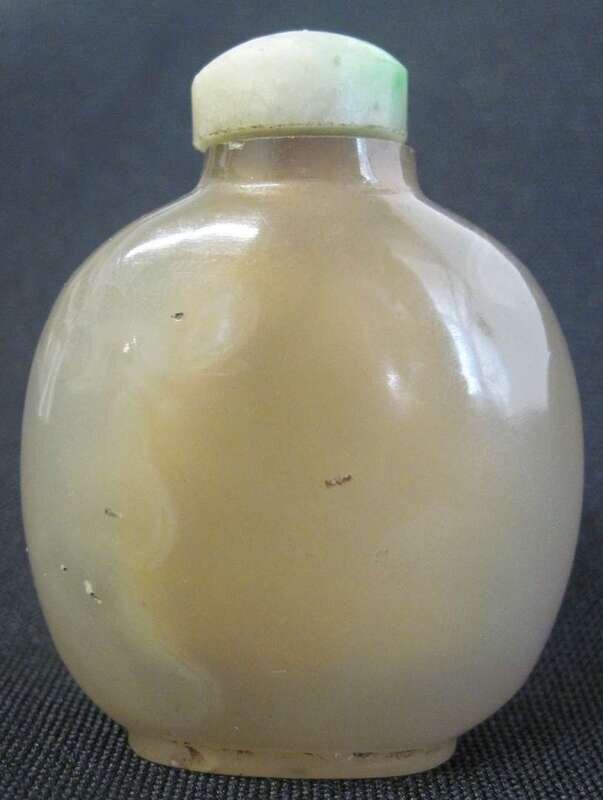 Bottle of unadorned rounded form with subtle white banded inclusions.