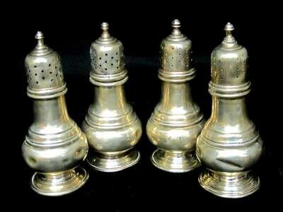 Two pair of sterling silver salt and pepper shakers 20th century