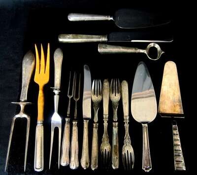 Assorted silver and silver plate hollow handled flat ware 20th century